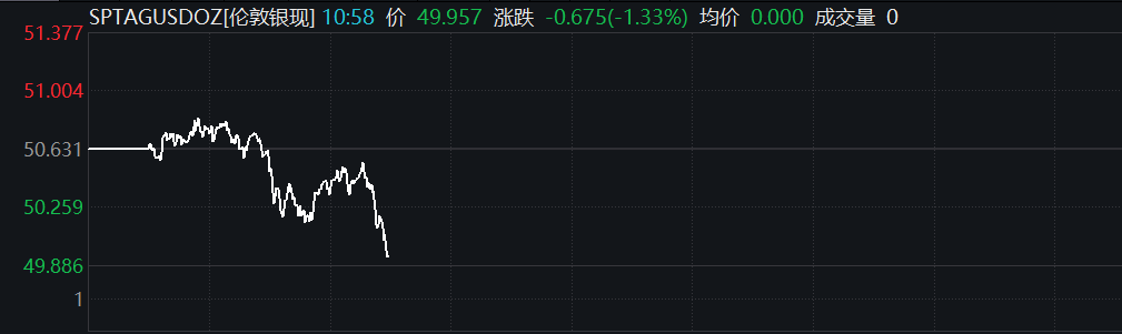 现货白银向下跌破50美元/盎司现货白银向下跌破50美元/盎司