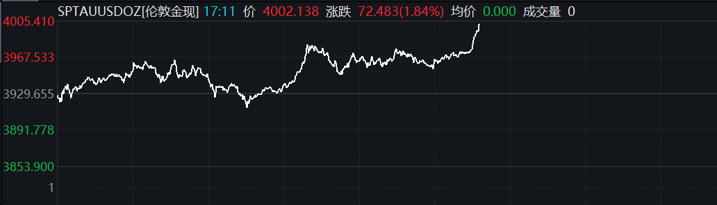 现货黄金站上4000美元/盎司现货黄金站上4000美元/盎司