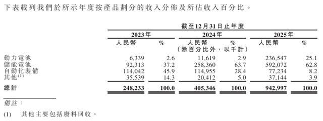 业绩层面,2023年至2025年,公司营收由2.48亿元增长至9.43亿元,主要受益于动力电池业务放量,尤其是来自上汽集团的订单贡献显著。业务结构亦发生变化:储能电池收入占比稳定在60%以上,动力电池占比快速提升至25.1%,而自动化装备收入占比持续下降。