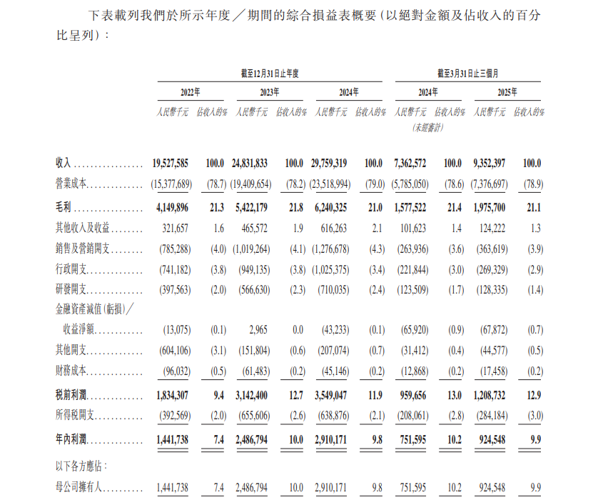 2022年-2024年以及截至2024年及2025年3月31日止三个月在线股票配资门户网,其净利润率分别为7.4%、10.0%、9.8%、10.2%及9.9%。